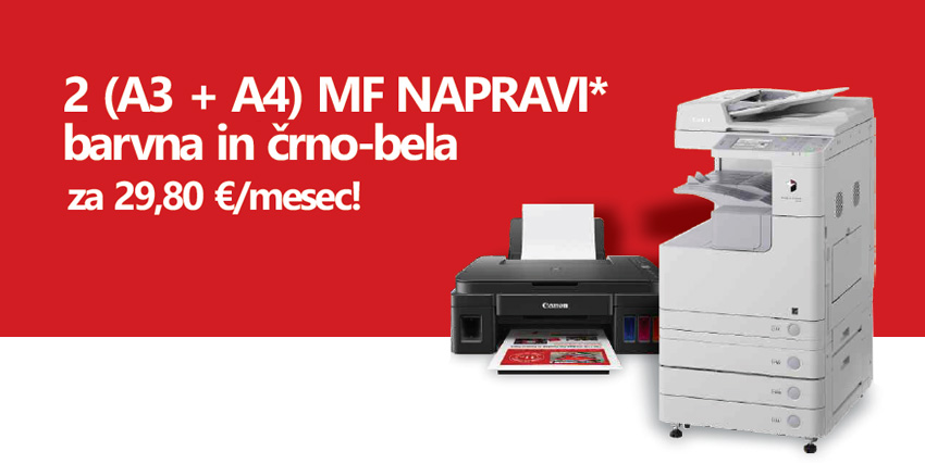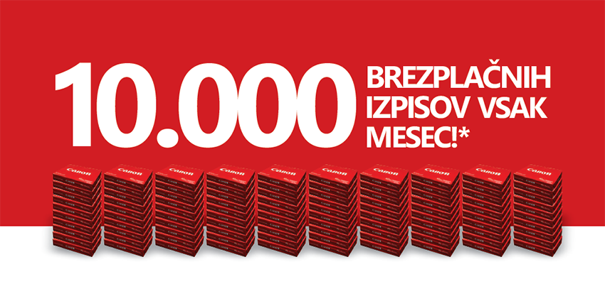 Najemite CANON barvno A3 multi-funkcijsko napravo in vsak mesec vam podarimo do 10.000 izpisov!